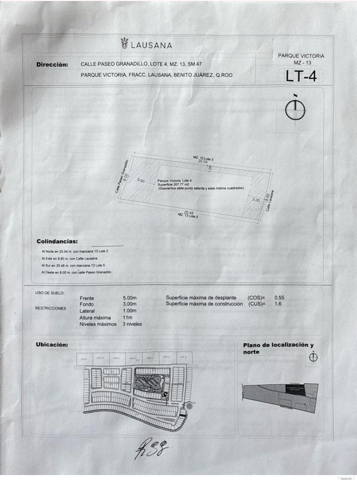 Lote de 206.23 m² en la nueva Residencial Lausana, ubicado a minutos de vías principales que conectan con centros comerciales, escuelas y servicios. Situado muy cerca de la caseta de acceso, dentro de una comunidad con doble filtro de seguridad y barda perimetral.
