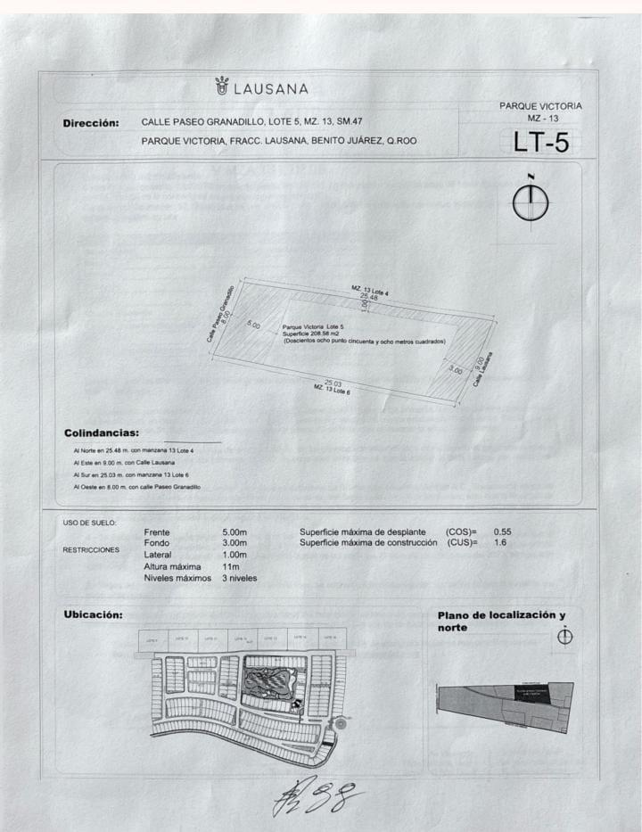 Este exclusivo lote cuenta con una superficie de 208.58 m²